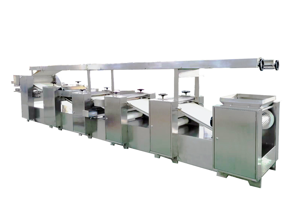 3、設(shè)備為變頻控制,每一道壓輥都采用單機(jī)驅(qū)動(dòng),通過(guò)測(cè)距傳感器,實(shí)現(xiàn)自動(dòng)面帶張緊控制,多輥聯(lián)動(dòng)??焖佥p松地制作大量面皮,提高生產(chǎn)效率。